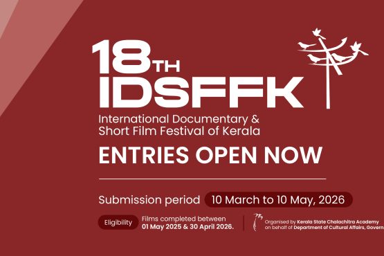 കേരള സംസ്ഥാന ചലച്ചിത്ര അക്കാദമി സംഘടിപ്പിക്കുന്ന 18ാമത് രാജ്യാന്തര ഡോക്യുമെന്ററി, ഹ്രസ്വചിത്രമേള (ഐ.ഡി.എസ്.എഫ്.എഫ്.കെ) യിലേയ്ക്ക് എൻട്രികൾ ക്ഷണിച്ചു. 2026 മാർച്ച്